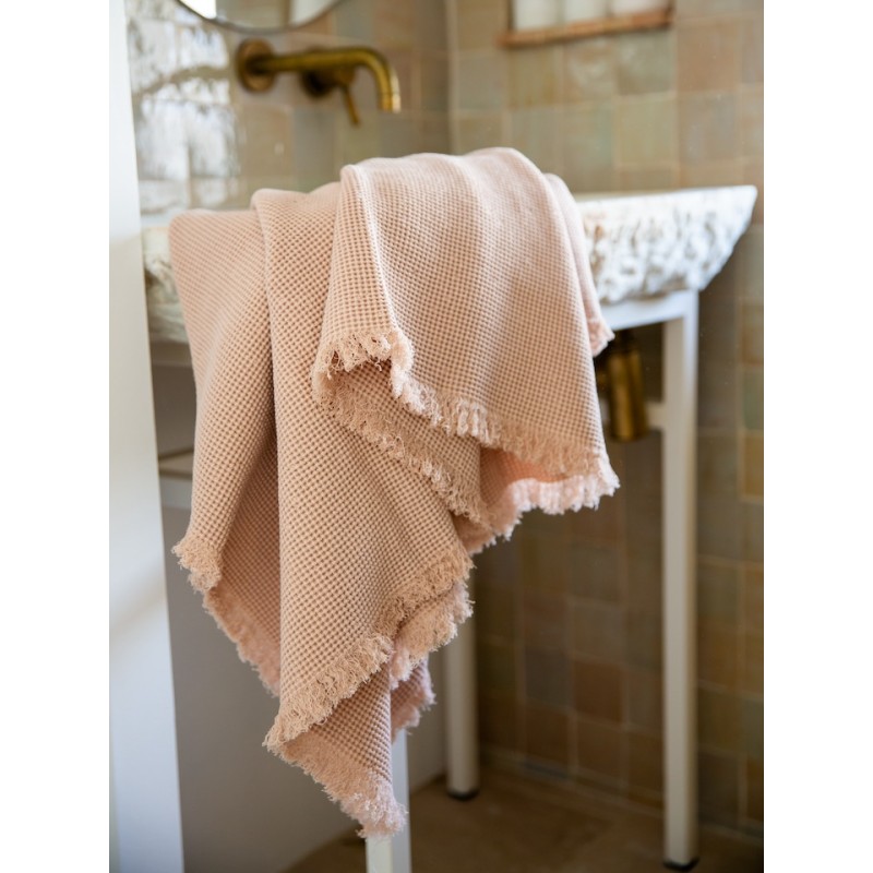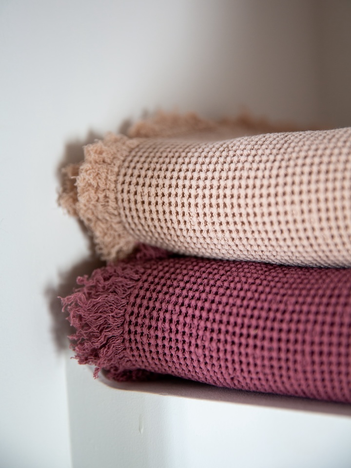 Alliant confort, élégance et efficacité, nos draps et serviettes de bain en nid d’abeille 100 % coton transforment chaque sortie de douche en un véritable moment de douceur.