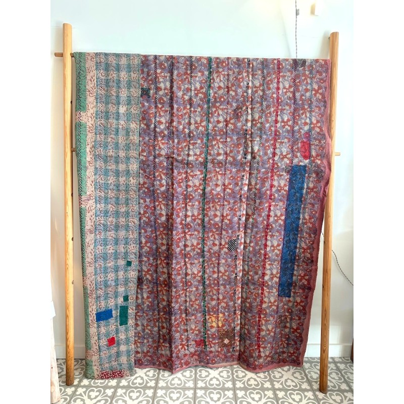 Ces kanthas (couvertures conçues artisanalement en Inde) sont des couvertures anciennes réalisées à partir de saris vintage assemblés et rebrodés à la main.